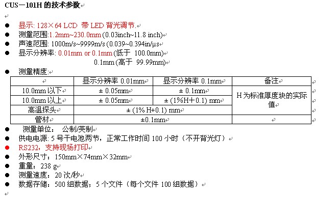 CUS-101H高精度超聲波測(cè)厚儀
